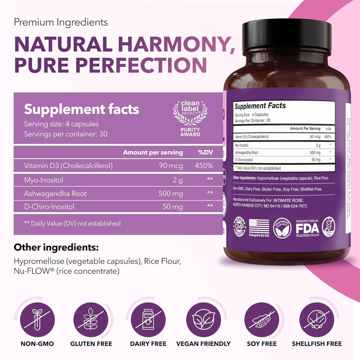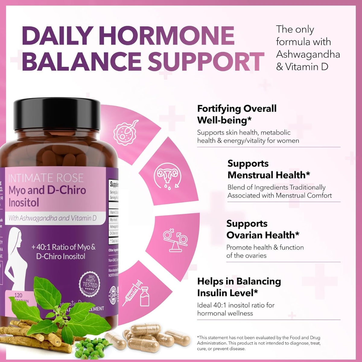 Myo and D Chiro Inositol + Ashwagandha 120 Cáps Intimate Rose